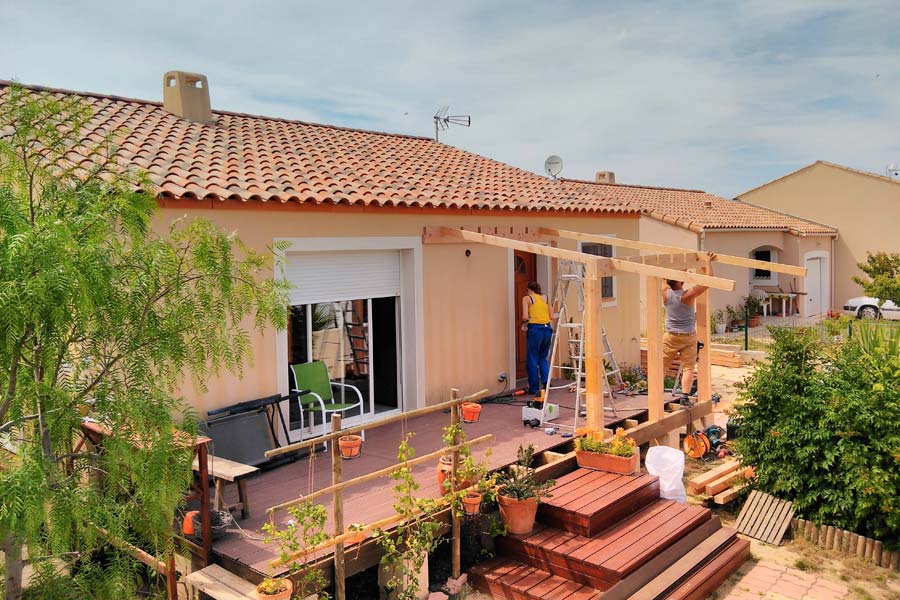 RÉALISATION D'UN APPENTISChantier réalisé chez un particulier à Nézignan l'Evêque. Réalisation d'un abri devant l'entrée de la maison.